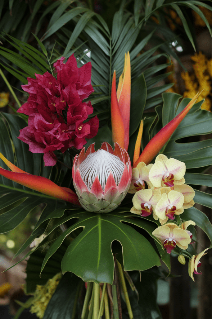 6. Summer Tropicals with Fuchsia and Orange Blooms