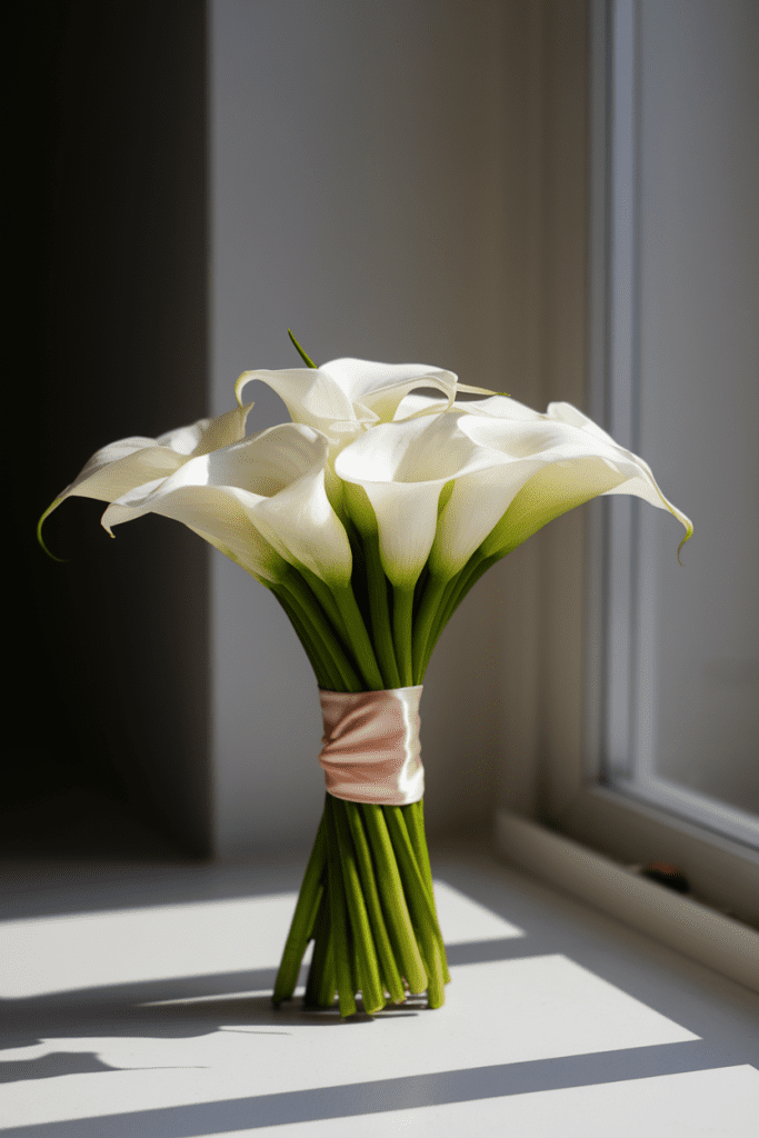 Calla lilies are architectural and sleek, perfect for brides who like modern minimalism. A hand-tied bunch feels like something straight off the runway.