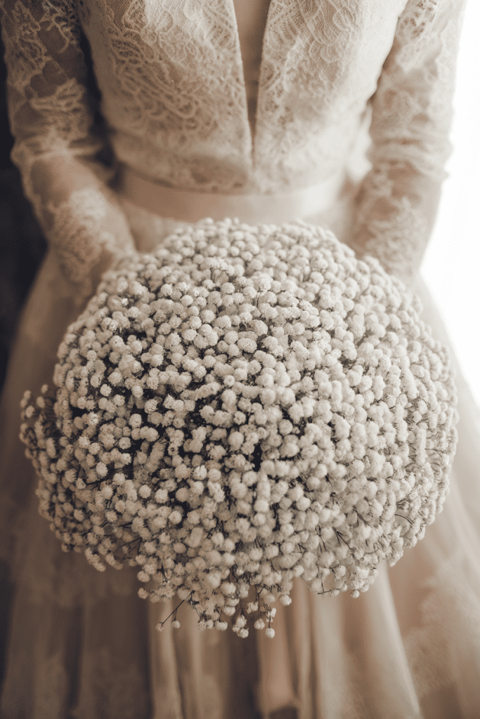 Baby’s breath isn’t just filler anymore. In oversized clusters, it creates a cloud-like bouquet that feels fresh and ethereal.