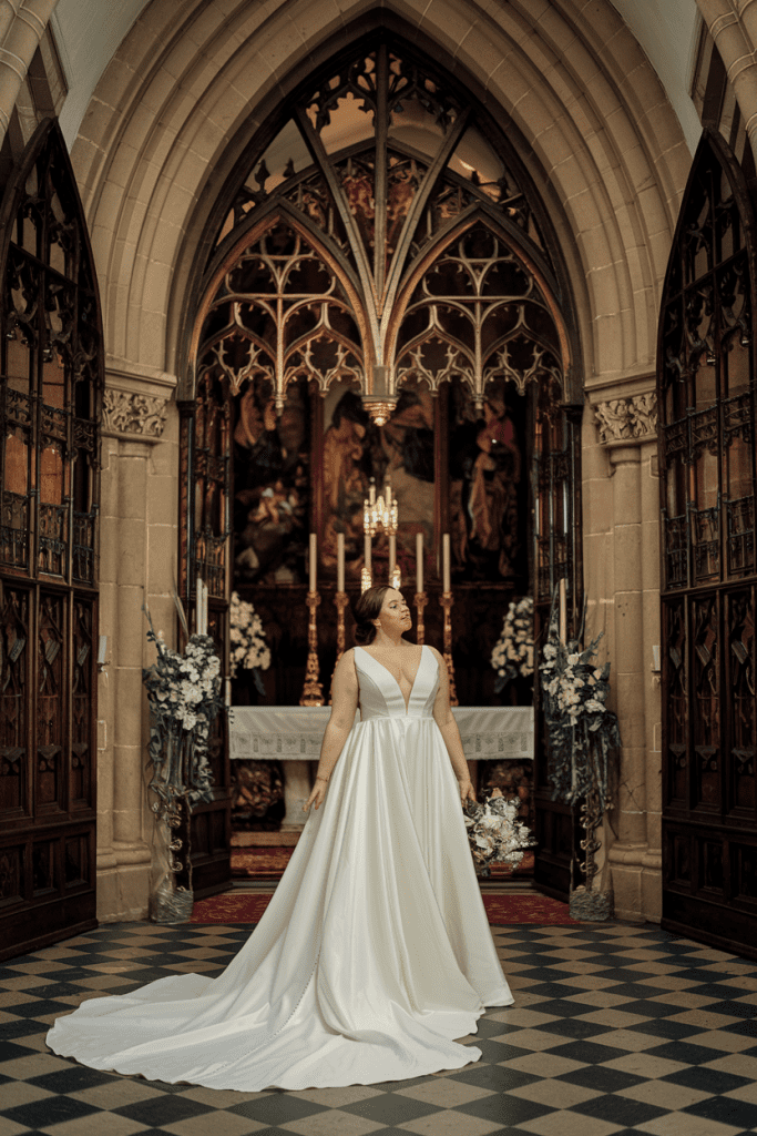 Comfort is equally important. A wedding day is long, often stretching from early morning preparations until late night dancing. Fabrics with a little stretch, gowns with thoughtful boning, and designs that allow freedom of movement will keep the focus on the celebration rather than on physical discomfort. Plus size brides should feel free to prioritize how they want to move and feel in their dress as much as how it photographs.