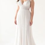 BHLDN curates plus-size gowns from beloved labels and their in-house designs, offering romance at more accessible price points. Expect dreamy lace, simple satins, modern slip silhouettes, and mix-and-match separates. It’s a sweet spot for style and value.