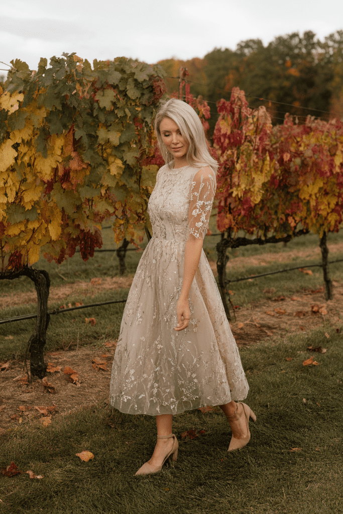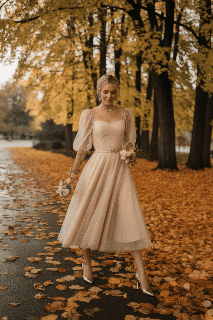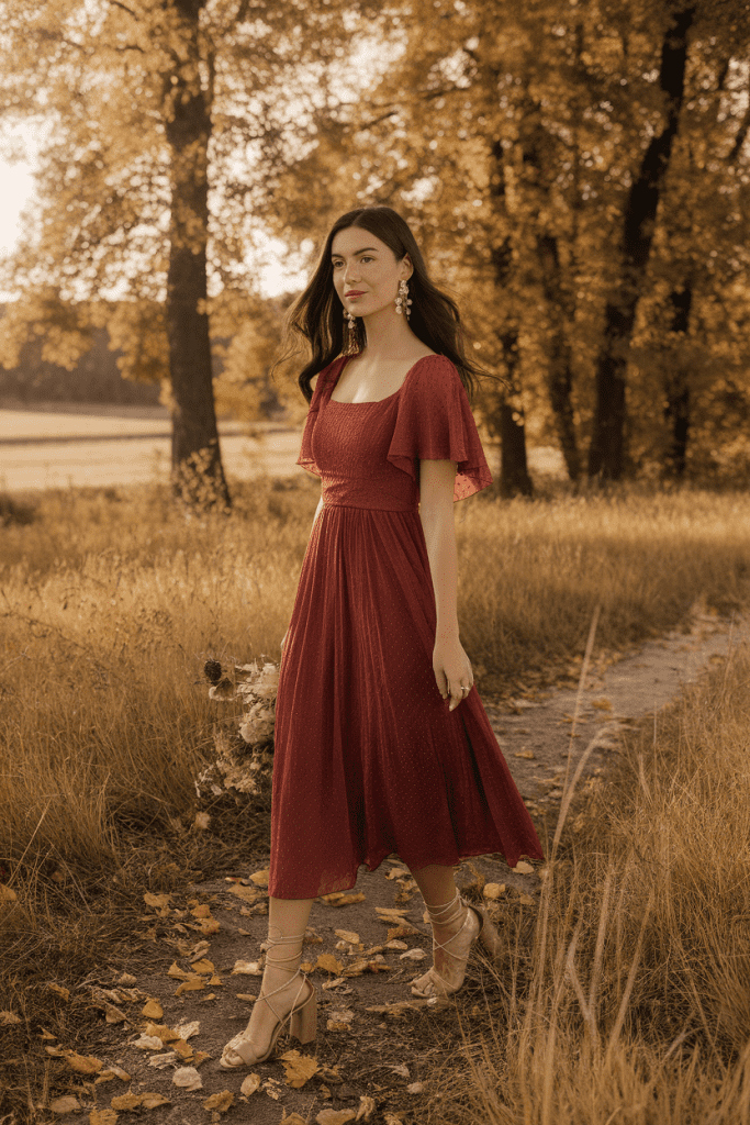 The key is balance: pick one or two whimsical details and pair them with chic, wearable accessories. That way you get dreamy vibes without looking like you accidentally wandered off a period drama set. Fall is about cozy layers, warm colors, and effortless romance — and these whimsical dresses let you enjoy all of it while still being the guest everyone compliments.